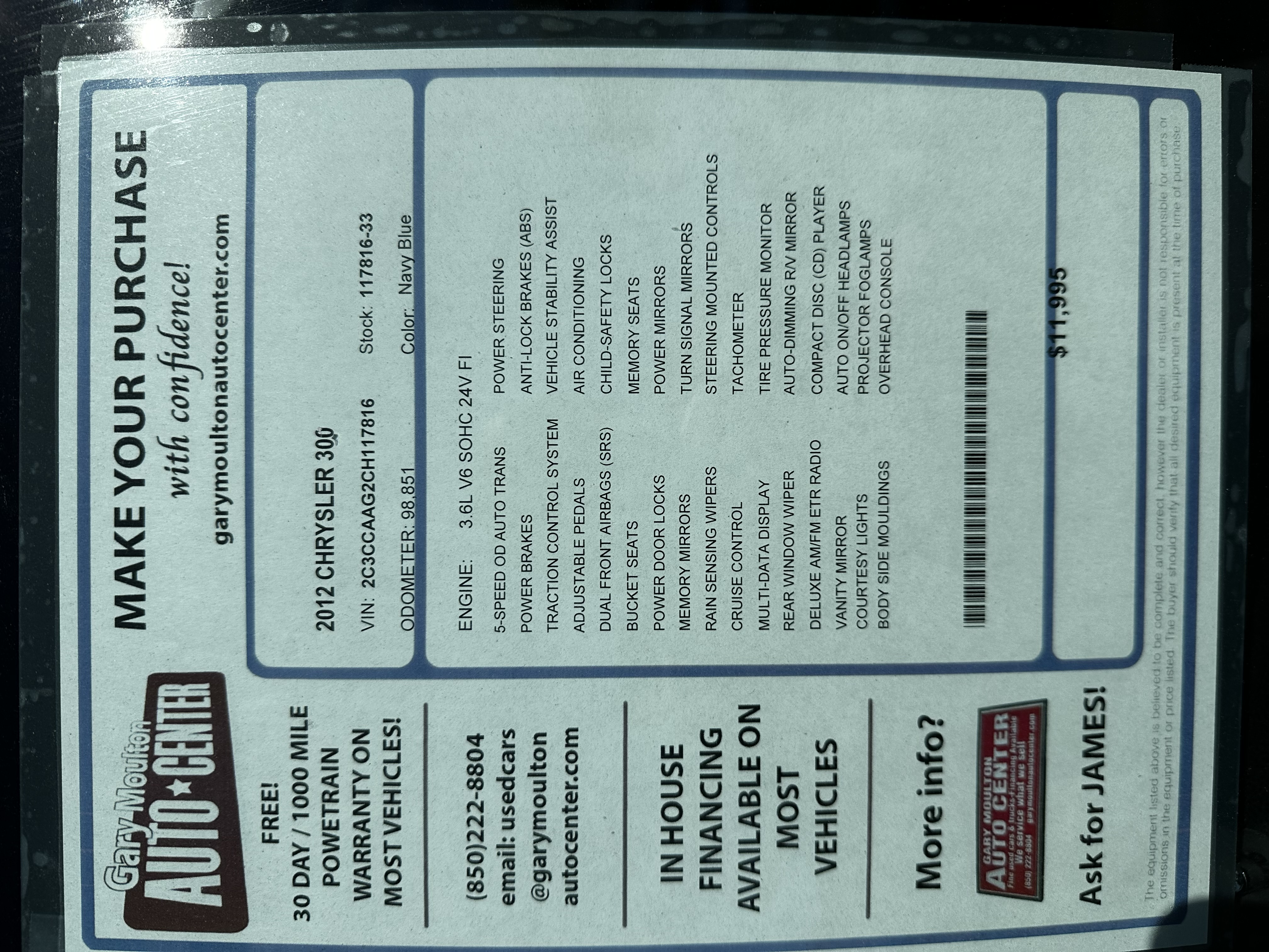 AutomaticAt Gary Moulton Auto Center every car sold comes with its own free warranty. Ask a salesman about the details! 850-222-8804